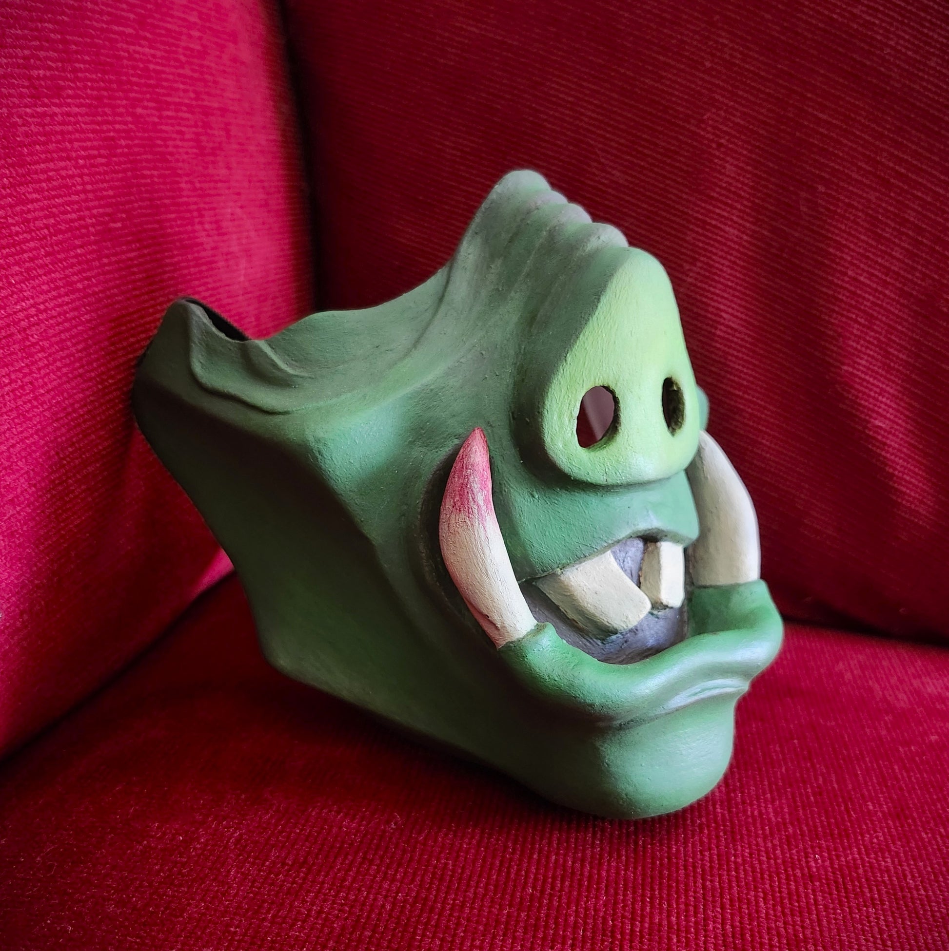 Our masks are hand sculpted, molded and cast with resin. Therse are then hand painted to give each a unique personality. These durable, high quality masks are a great addition to any costume or cosplay or on their own.